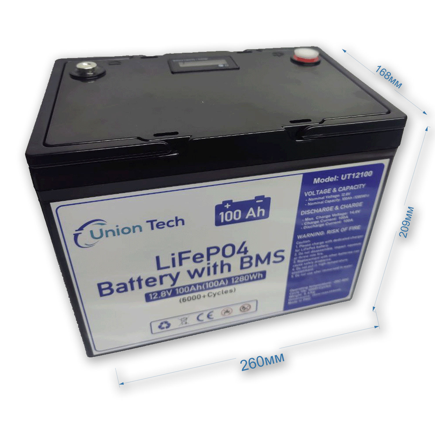 Усі літієві акумулятори UnionTech оснащені вбудованою системою управління батареєю (BMS), яка забезпечує захист від перегріву, надмірного розряду, перезаряду та короткого замикання.